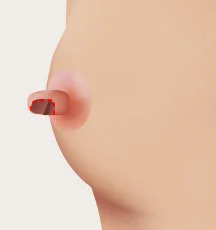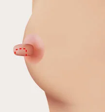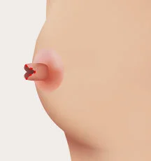 The incision is made on the head of the nipple into a “V” shape, and the remaining area is sewn together.