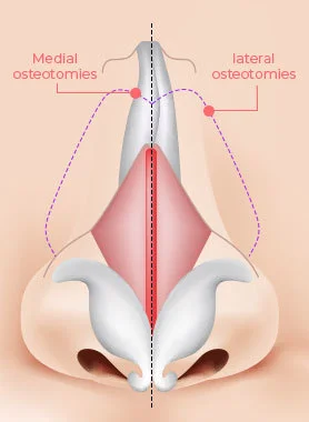 Separation of nasal bones through medial and lateral osteotomies